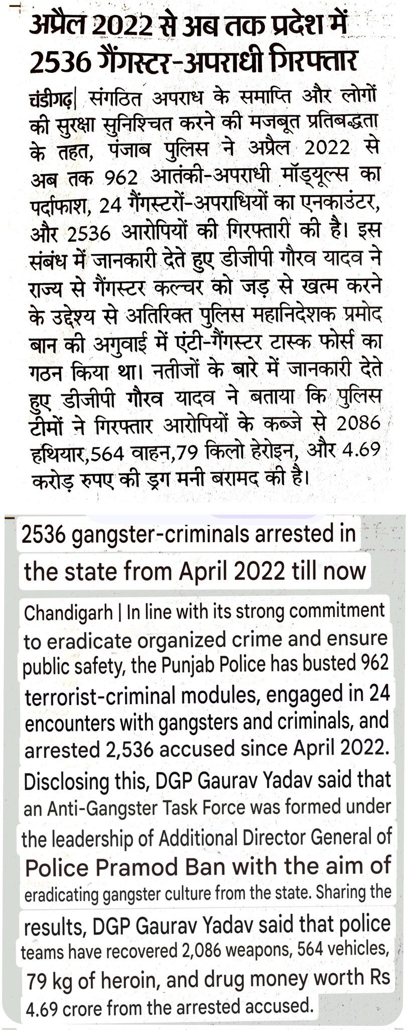 https://x.com/BhagwantMann/status/1998739752481337351?s=20The 2536 Gangsters-Criminals arrested from Arill 2022 till now.