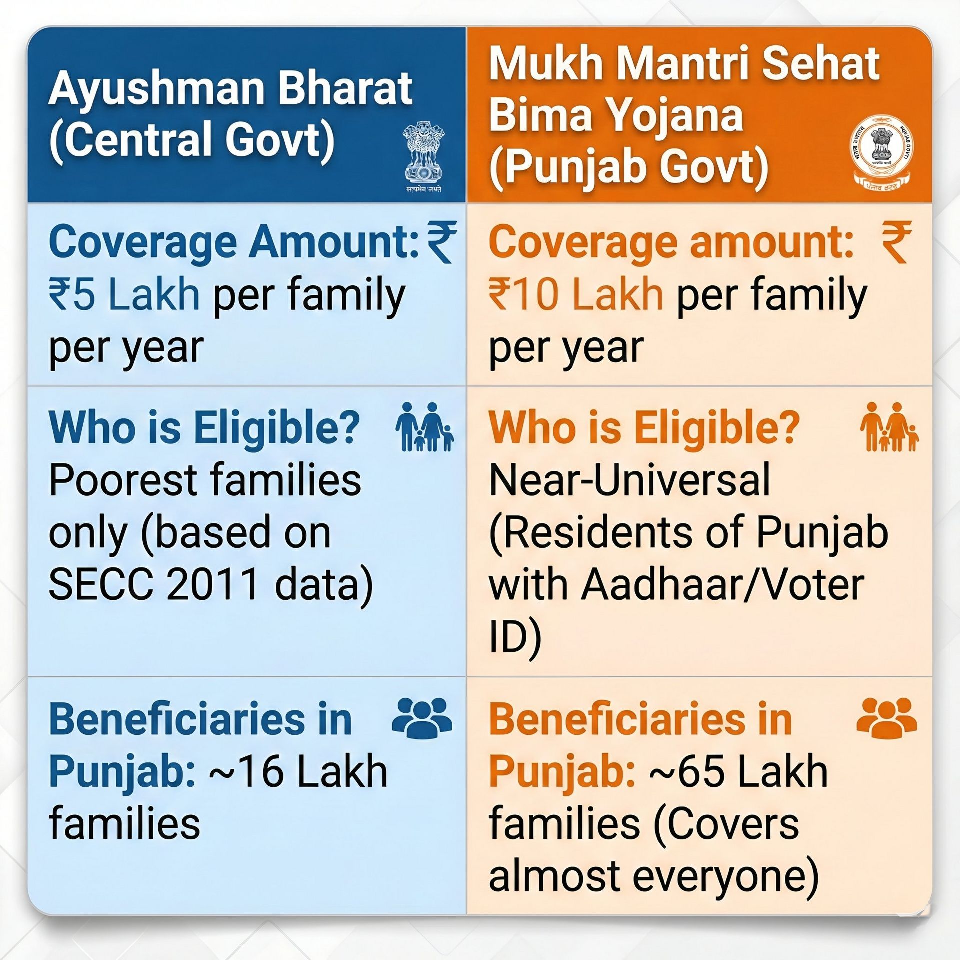 🔷 Treatment for 2,350+ diseases can be availed in more than 900 government and private hospitals in Punjab and Chandigarh.