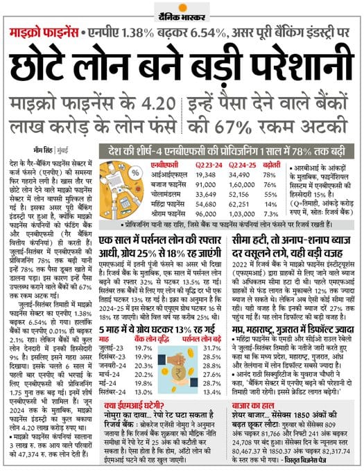 माइक्रो फाइनेंस सेक्टर में कर्ज फंसने की समस्या गहराई, छोटे लोन बने बड़ी परेशानी... NPA 1.38% से बढ़कर 6.54% हुआ, पूरी बैंकिंग इंडस्ट्री पर असर